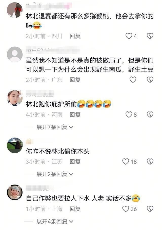 这还没完,他越说越起劲,又补充了一个细节,说之前比赛的时候,他采的猕猴桃用叶子盖得好好的,结果回来就发现叶子被人掀开了,里面的果子少了不少,明里暗里都在指控这事儿就是林北干的。这一通爆料下来,活生生把自己从一个作弊者,塑造成了一个被同行打压、陷害的可怜人。
